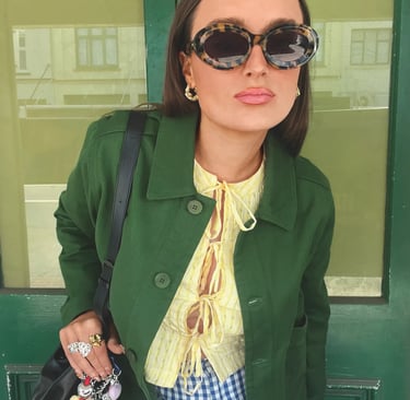 That’s when I stumbled upon a reel by Lauren Brodie, a 34-year-old marketing manager from New Zealand. She shared how her sense of style blossomed after having her daughter. “My daughter taught me so much,” she wrote in an email. “Kids dress without inhibition, without worrying about what’s flattering. They just have fun.” Inspired by this unfiltered joy, Lauren stopped dressing to "shrink herself" and began exploring bold prints, vibrant colors, and playful layering. Her outfits are a celebration of self-expression—like pairing a gingham dress over a puff-sleeved blouse with bright red scrunchies. It was refreshing—proof that you don’t need to lose weight before you deserve